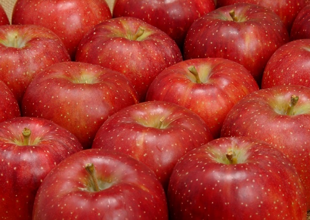 信州産“秋映”は、かためのしゃきっとした食感で、甘味と適度な酸味が特長で果汁が多く、果皮が暗紅色のりんごです。